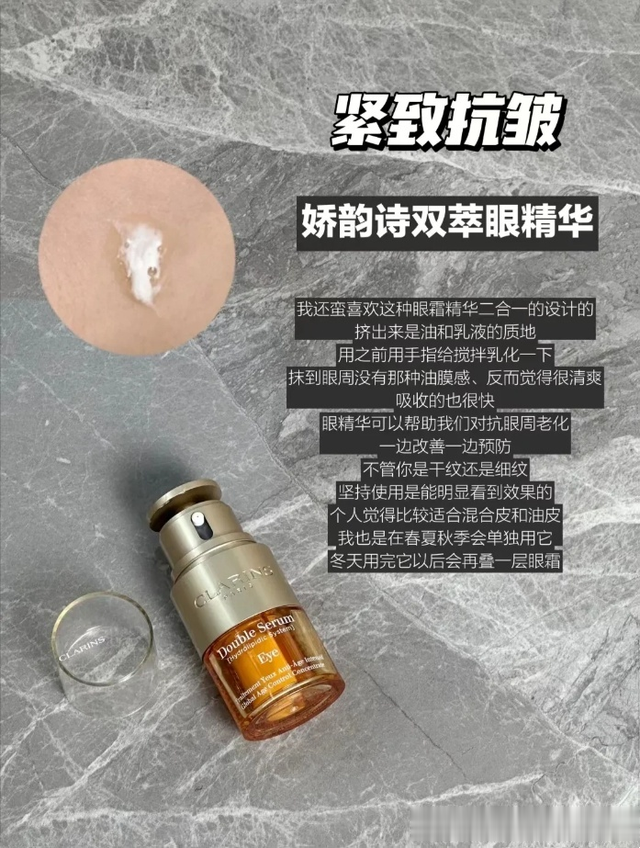 单用适合眼周没什么老化问题,解决眼周肤色不均的姐妹,和双萃一样双管设计,在眼周油润的裹覆感,延展性和吸收速度都很好,有时候犯懒会直接涂抹全脸。